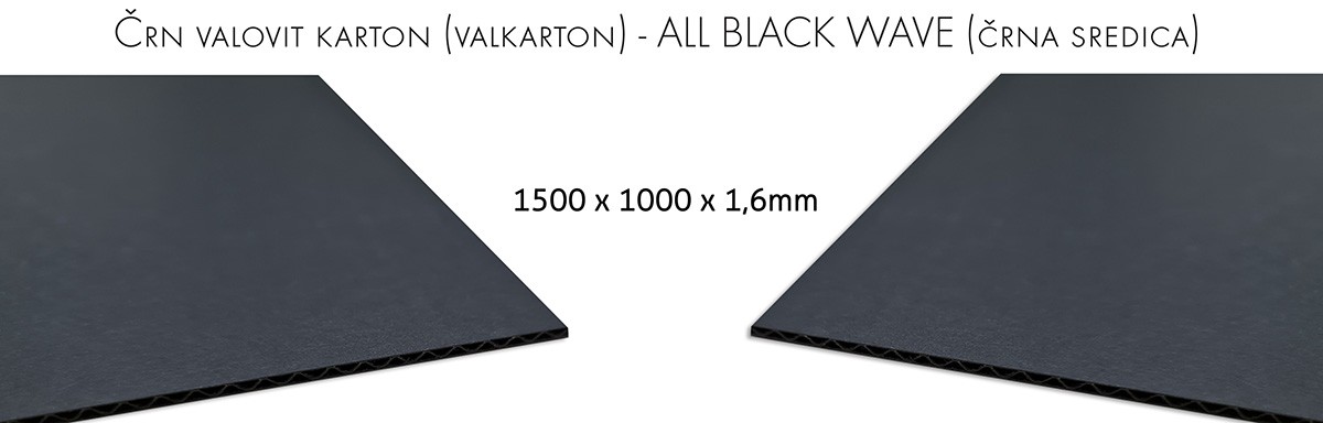 na zalogo smo dobili nov črn valoviti karton (valkarton) s črno sredico - ALL BLACK WAVE debeline 1,6mm in dimenzije 1500x 1000mm.
