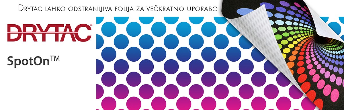 SpotOn je lahko odstranljiva folija priznanega proizvajalca Drytac. Folija se enostavno montira, lahko jo imamo za večkratno apliciranje (odlepimo in spet prilepimo).