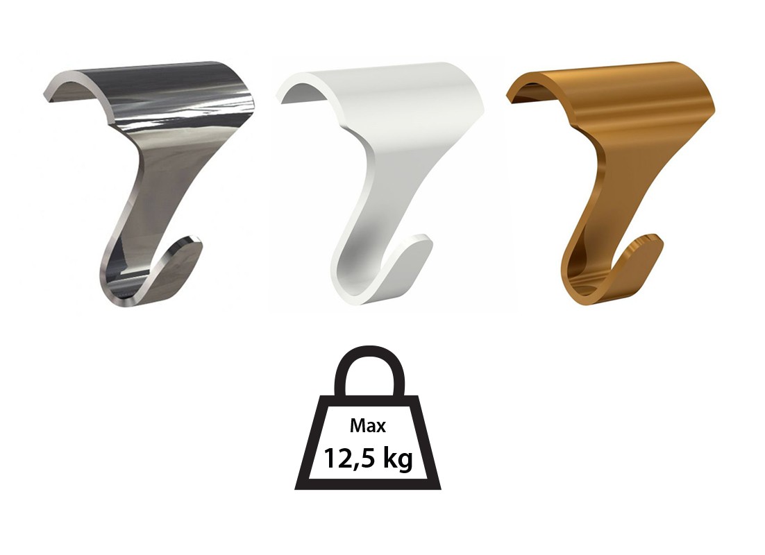 Maksimalna obremenitev je 12,5kg. V različnih barvah: bela, medenina, nikelj.