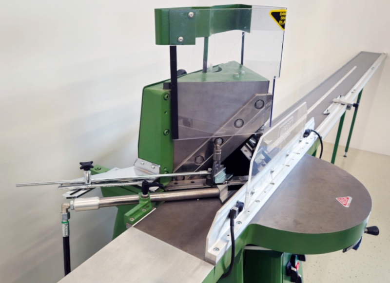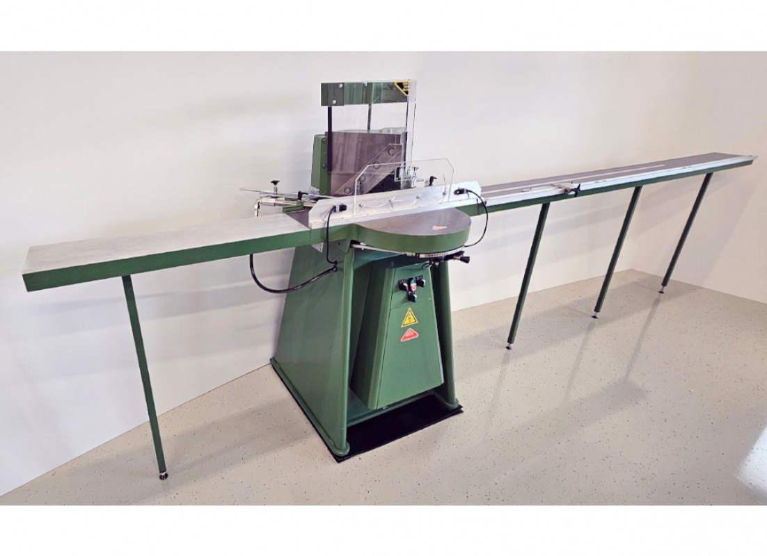 Avtomatska elektrohidravlična giljotina, malo rabljena, zelo lepo ohranjena. Idealna za rezanje lesenih, PVC in MDF letev. Desni podaljšek z merilno skalo 2,5m omogoča še bolj praktično uporabo. Giljotina je zelo hitra, natančna in vzdržljiva.